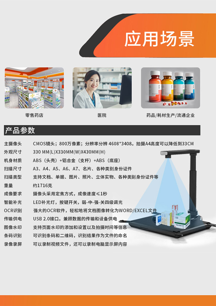 (*由于產品升級或其他原因,藥品溯源碼高拍儀產品實際參數(shù)有可能變更,以實際產品為準。本文中的所有陳述、信息和建議也不構成任何明示或暗示的擔保)