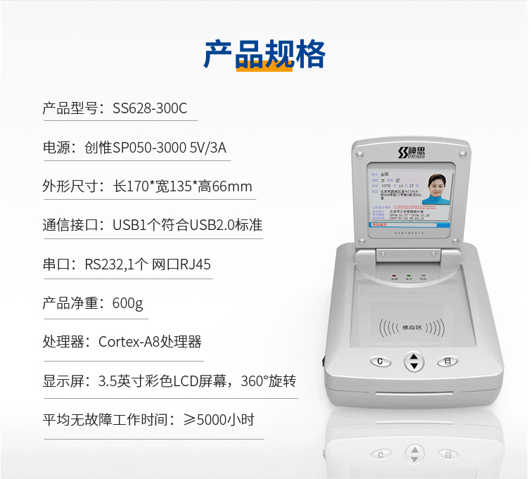 (*由于產(chǎn)品升級或其他原因,神思SS628-300c臺式居民身份證閱讀機具產(chǎn)品實際參數(shù)有可能變更,以實際產(chǎn)品為準。本文中的所有陳述、信息和建議也不構(gòu)成任何明示或暗示的擔(dān)保)