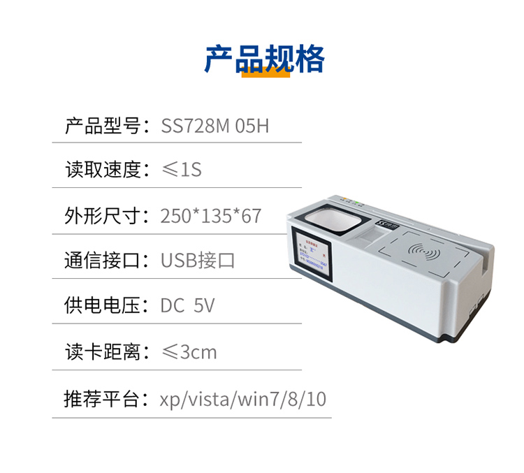 (*由于產(chǎn)品升級或其他原因,神思社保卡讀卡器SS728-M05H產(chǎn)品實(shí)際參數(shù)有可能變更,以實(shí)際產(chǎn)品為準(zhǔn)。本文中的所有陳述、信息和建議也不構(gòu)成任何明示或暗示的擔(dān)保)